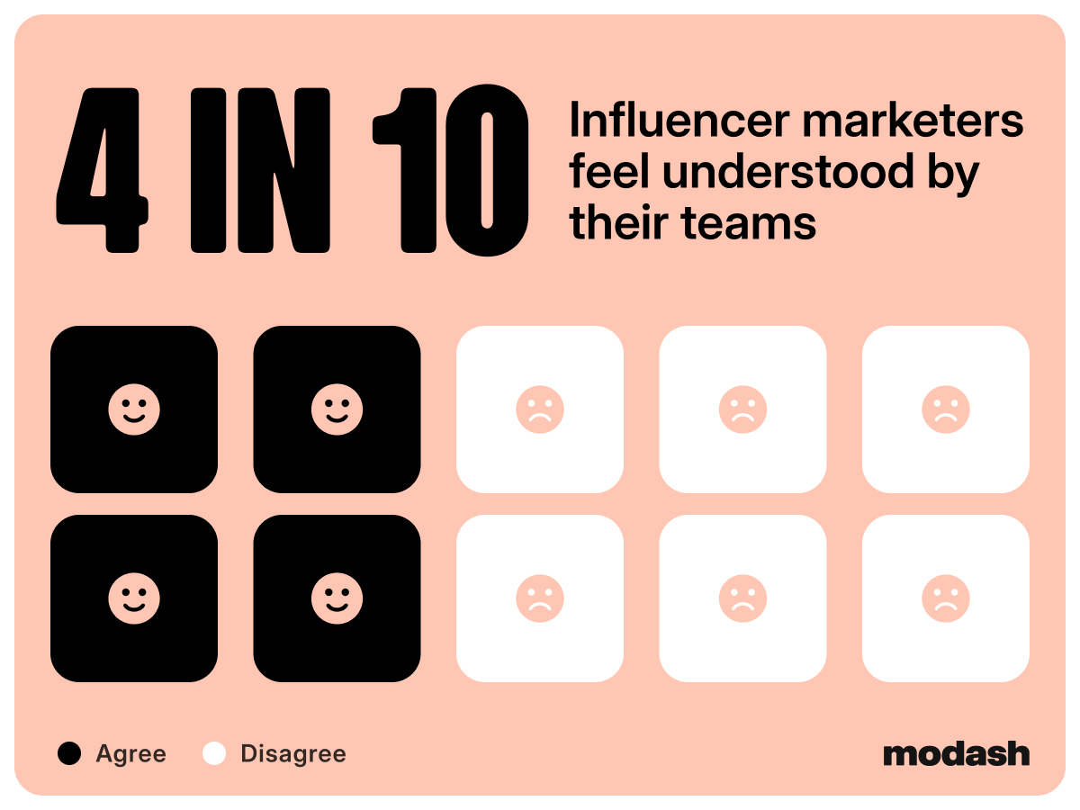 Only 4 in 10 influencer marketers said leadership and the rest of the team truly understood their role and the value they provide.
