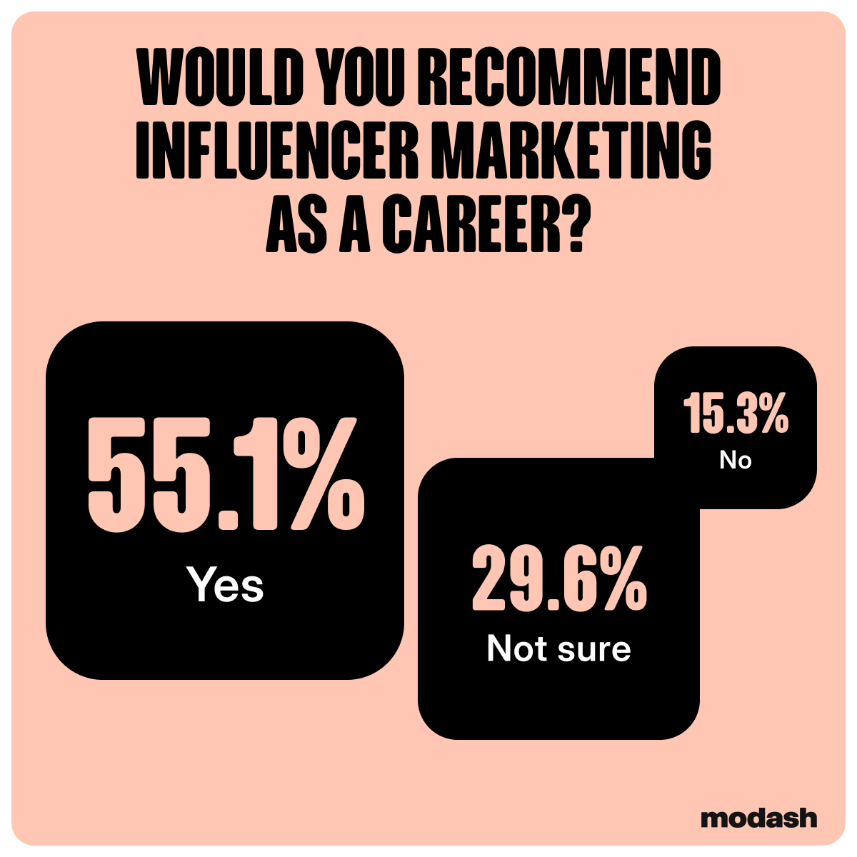 After everything — the underpayment, the unpaid overtime, the task overload, the teams that don't get it — 6 in 10 influencer marketers said they were satisfied with their jobs. Over half would recommend it as a career. And 57% feel optimistic about their earning potential.