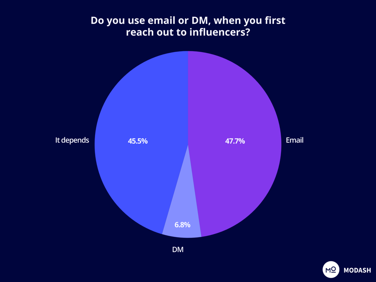 48% of marketers use emails (over DMs) when they first reach out to influencers. While 46% of marketers say, “It depends.”